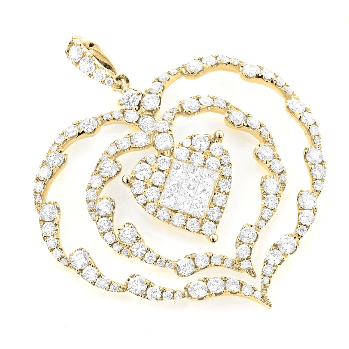 Treat yourself to this Ladies Unique Diamond Heart Pendant in 14k Gold which showcases 3 carats of high quality G/VS diamonds, masterfully pave, prong and illusion set. This diamond pendant weighs approximately 5 grams and looks fabulous. You also can personalize this piece or check we’ve already made and create your own design.