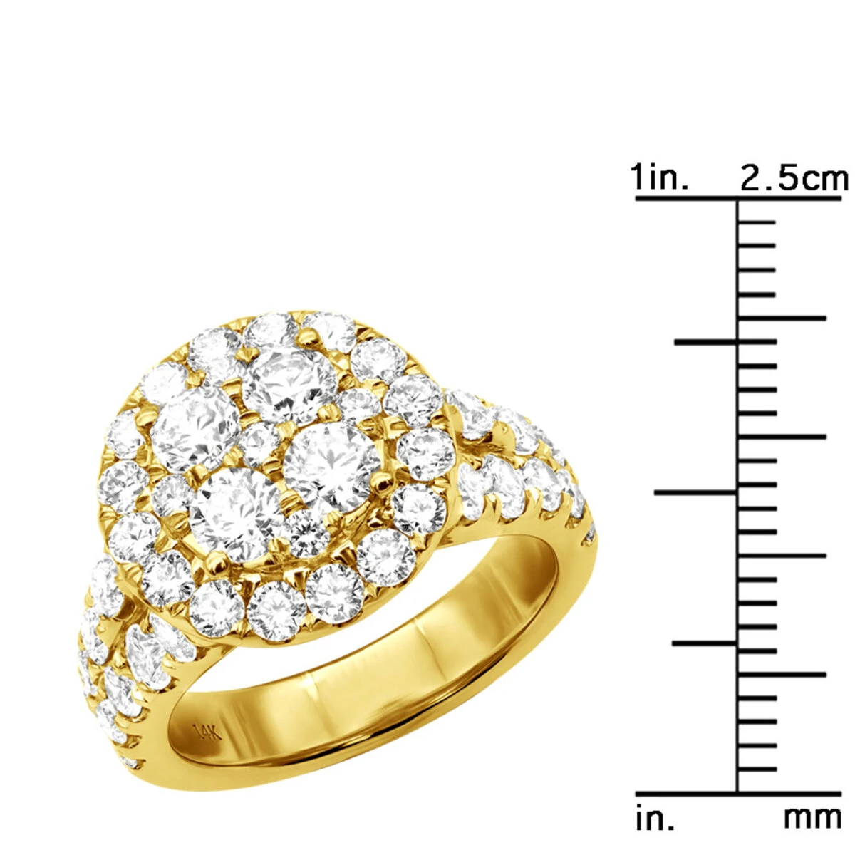 Large 4 Carat Diamond Engagement Ring For Women 14K Yellow Gold Cluster Diamonds