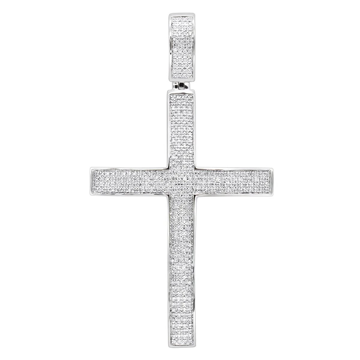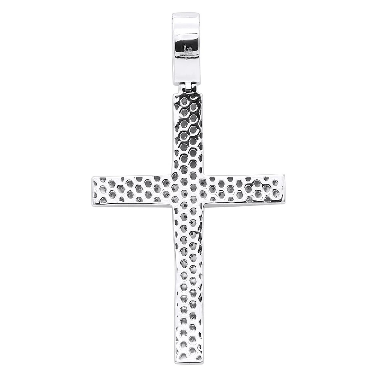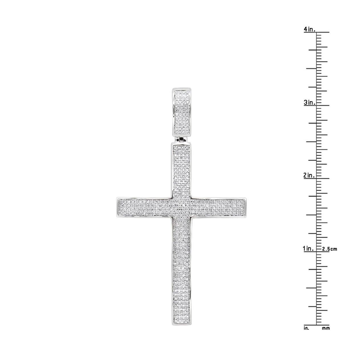 Large Men’s Sterling Silver Diamond Cross Pendant 1.31ct