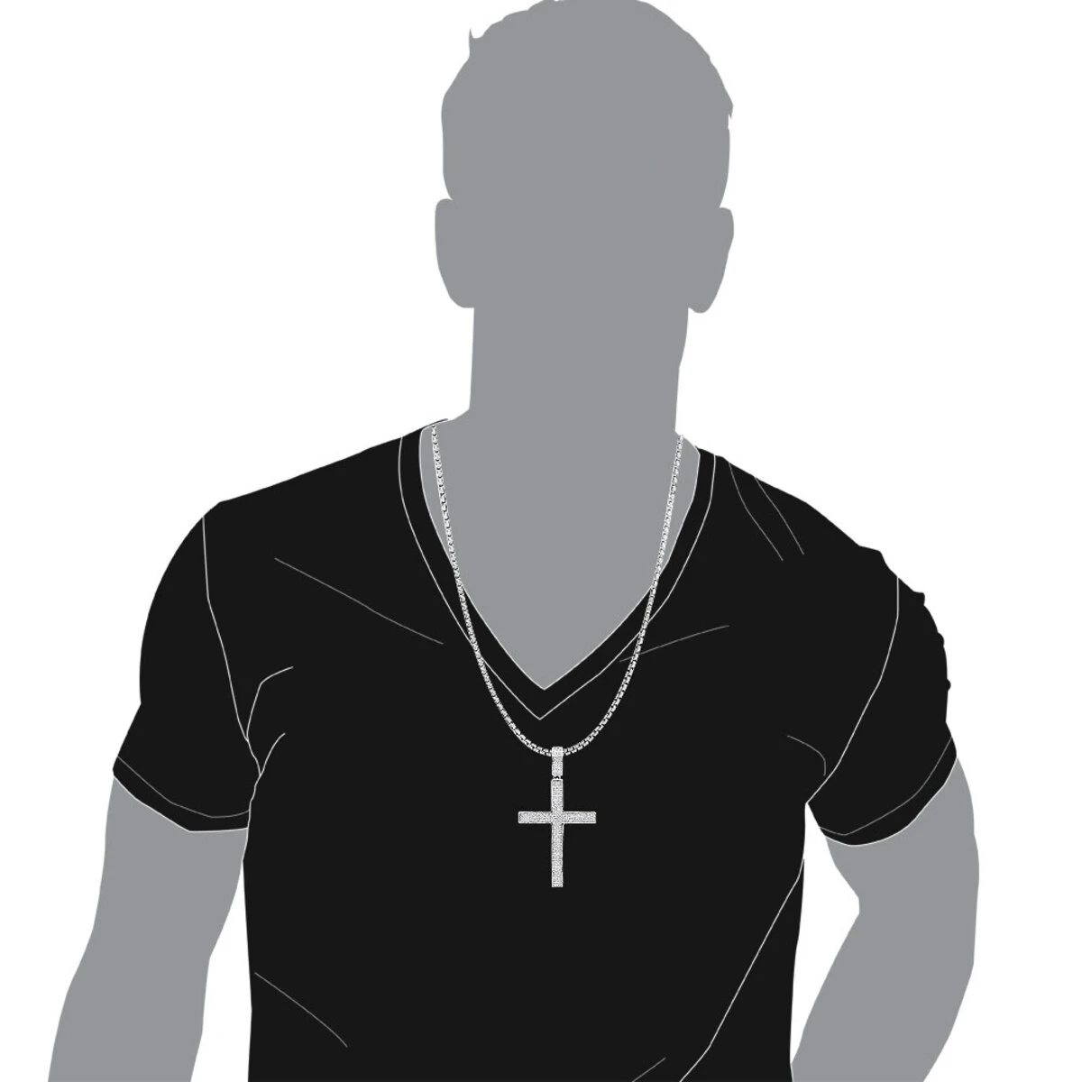 This Large Men’s Sterling Silver Diamond Cross Pendant showcases 1.31 carats of genuine diamonds and made from solid sterling silver. Featuring an oversized design (the cross is over 3 inches long: 3 3/16in) and a luxurious rhodium plating for a polished look, this men’s diamond cross pendant in 925 sterling silver is an affordable alternative to gold diamond jewelry. You also can personalize this piece or check we’ve already made and create your own design.