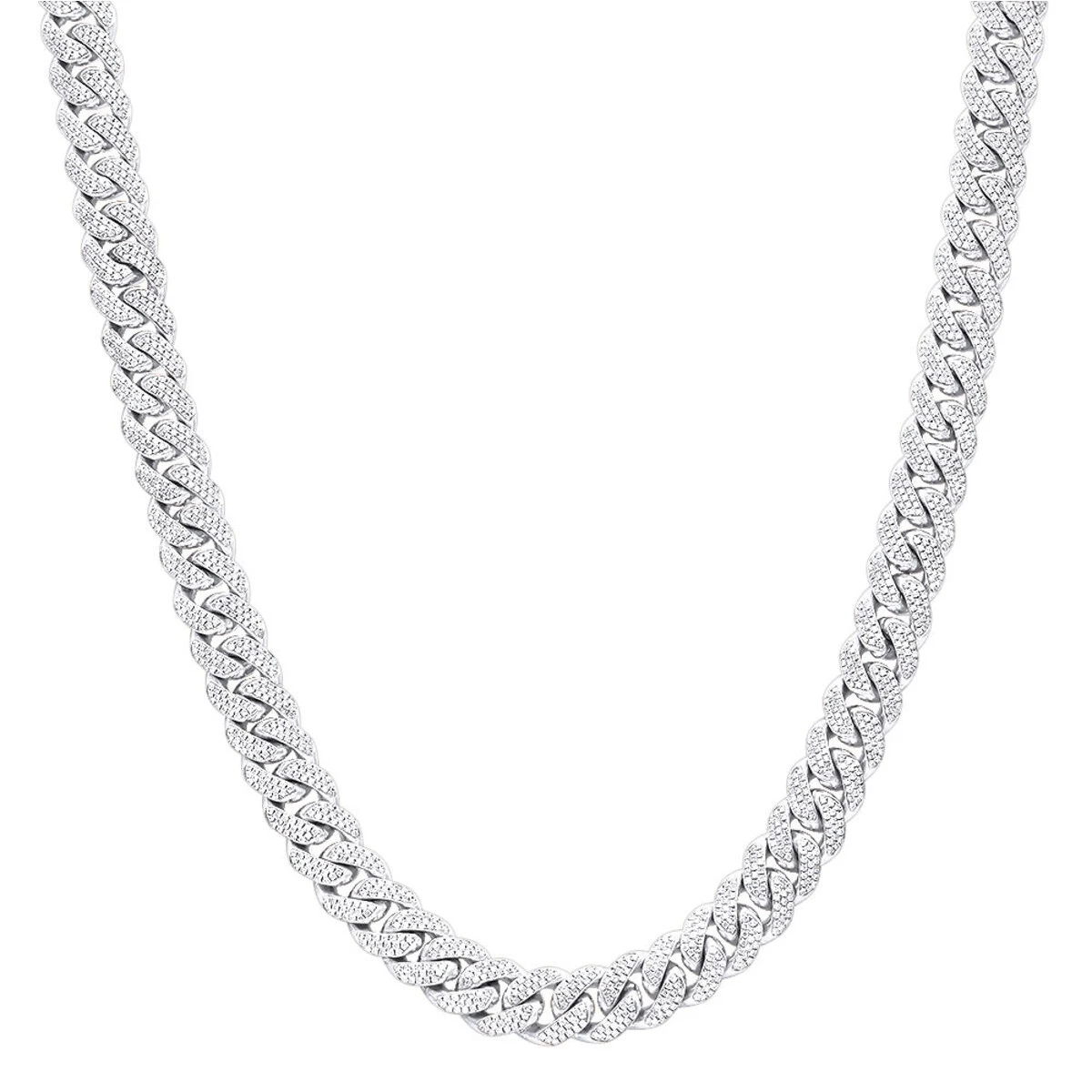Luxurman Men’s Diamond Necklaces: this 10k Gold Miami Cuban Link Chain with Diamonds by Luxurman features a classic and top selling gold Cuban Link Chain decorated with round pave set diamonds totalling 23.55 carats; this men’s diamond chain is 1/2 inch wide (13mm) and comes in different length (default is 30 inches) and gold colors to match your style. Available in white gold, yellow gold and rose gold.