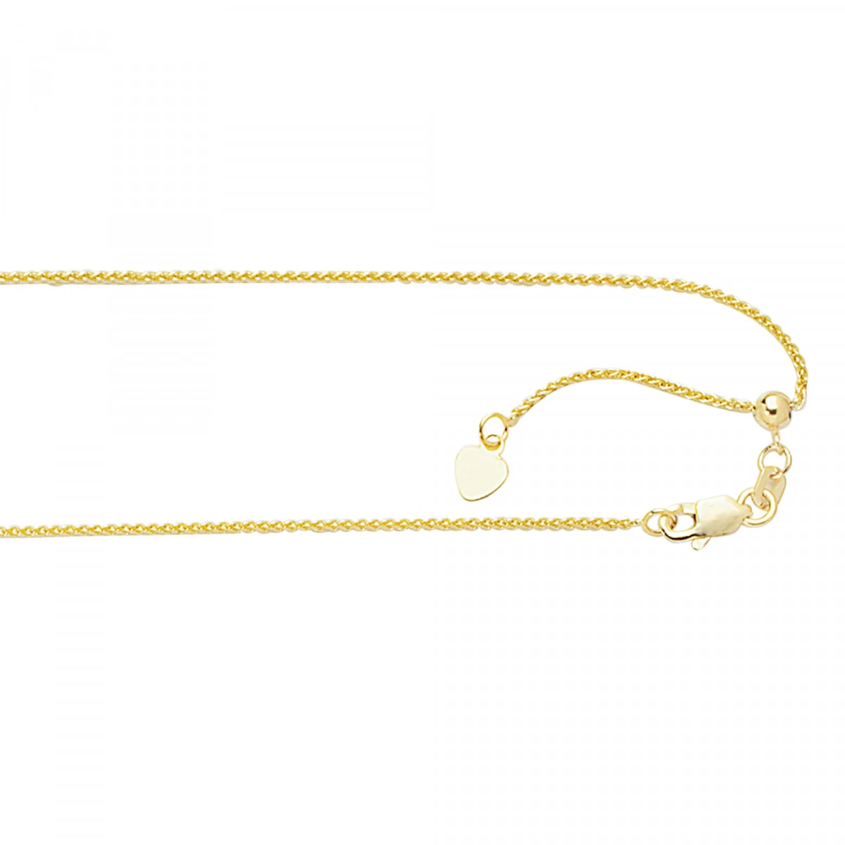 LUXURMAN Solid Gold Chains: This 10k Gold Wheat Chain For Women Round Adjustable is 1mm wide, each Round Adjustable Wheat necklace is quality made and is available at up to 50% off the retail price. LUXURMAN Gold Chains are always SOLID gold chains, never hollow, never gold filled, just good old solid real gold chains without any gimmicks. No matter if you choose 10k gold chain, 14k gold chain, or 18k gold chain you can be sure of the LUXURMAN commitment to deliver high quality affordable luxury. Buy gold chains and gold bracelets from LUXURMAN brand and you will never have to ask a question if the chain is real or not, if the chain is solid or hollow, if the chain is gold filled or not. LUXURMAN solid gold chains also come with a LIFETIME warranty and upgrade guarantee. Approximate weights for each length: 22in.-2.4gr.