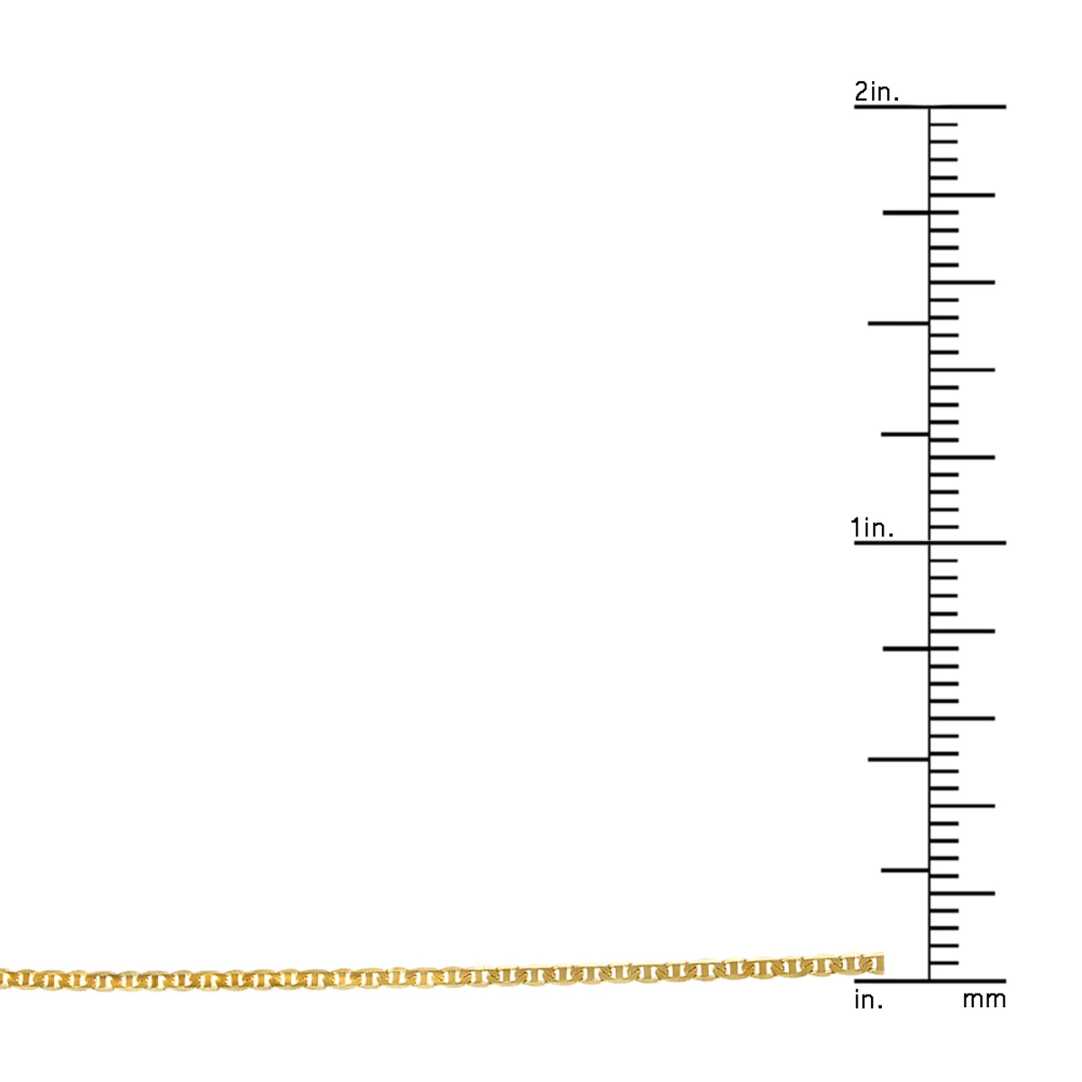 LUXURMAN Solid Gold Chains: This 14k Gold Mariner Chain For Men & Women is 1.7mm wide, each Mariner necklace is quality made and is available at up to 50% off the retail price. LUXURMAN Gold Chains are always SOLID gold chains, never hollow, never gold filled, just good old solid real gold chains without any gimmicks. No matter if you choose 10k gold chain, 14k gold chain, or 18k gold chain you can be sure of the LUXURMAN commitment to deliver high quality affordable luxury. Buy gold chains and gold bracelets from LUXURMAN brand and you will never have to ask a question if the chain is real or not, if the chain is solid or hollow, if the chain is gold filled or not. LUXURMAN solid gold chains also come with a LIFETIME warranty and upgrade guarantee. Approximate weights for each length: 10in.-1.7gr., 16in.-1.9gr., 18in.-2.1gr., 20in.-2.3gr., 24in.-2.7gr.