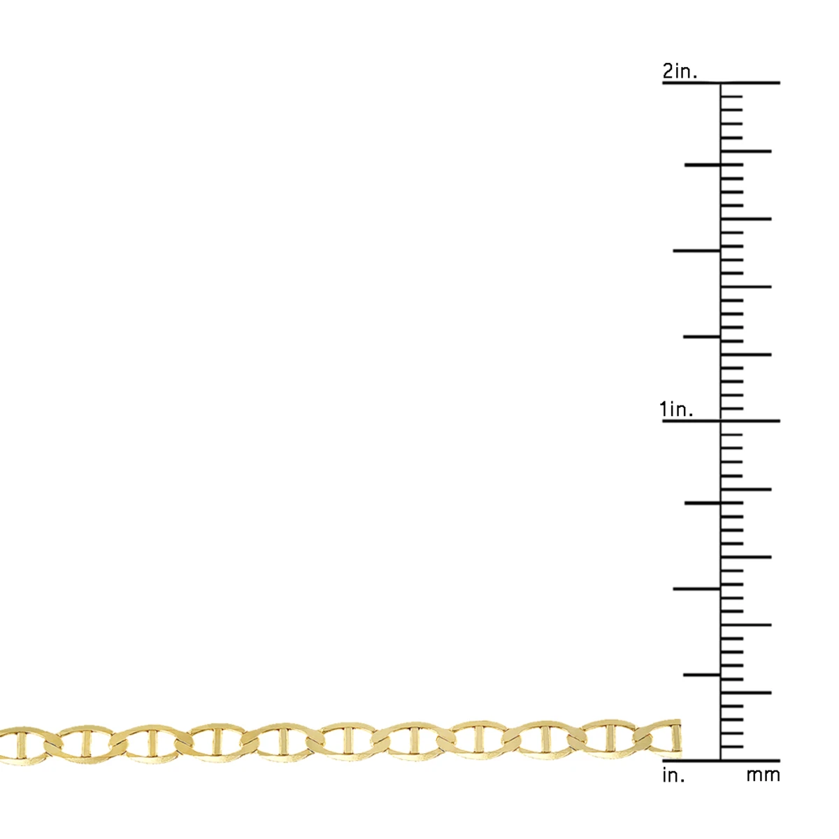 LUXURMAN Solid Gold Chains: This 14k Gold Mariner Chain For Men & Women is 3mm wide, each Mariner necklace is quality made and is available at up to 50% off the retail price. LUXURMAN Gold Chains are always SOLID gold chains, never hollow, never gold filled, just good old solid real gold chains without any gimmicks. No matter if you choose 10k gold chain, 14k gold chain, or 18k gold chain you can be sure of the LUXURMAN commitment to deliver high quality affordable luxury. Buy gold chains and gold bracelets from LUXURMAN brand and you will never have to ask a question if the chain is real or not, if the chain is solid or hollow, if the chain is gold filled or not. LUXURMAN solid gold chains also come with a LIFETIME warranty and upgrade guarantee. Approximate weights for each length: 7in.-2gr., 10in.-2.5gr., 16in.-3.7gr., 18in.-4.2gr., 20in.-4.6gr., 22in.-5gr., 24in.-5.4gr.