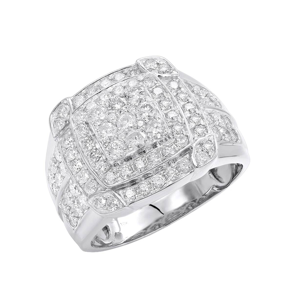 Men’s Diamond Pinky Rings: This 10K Gold 2.5 Carat Luxurman Diamond Ring For Men has a unique roundish design and weights approximately 8 grams showcasing 2.5 carats of sparkling round cut diamonds masterfully set in highly polished 10K gold. This masculine men’s diamond ring makes a perfect pinky ring and a unique men’s wedding band. Featuring a versatile design and a highly polished gold finish, this men’s diamond ring is available in 10K white, yellow and rose gold.