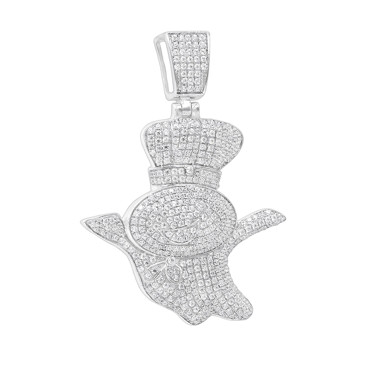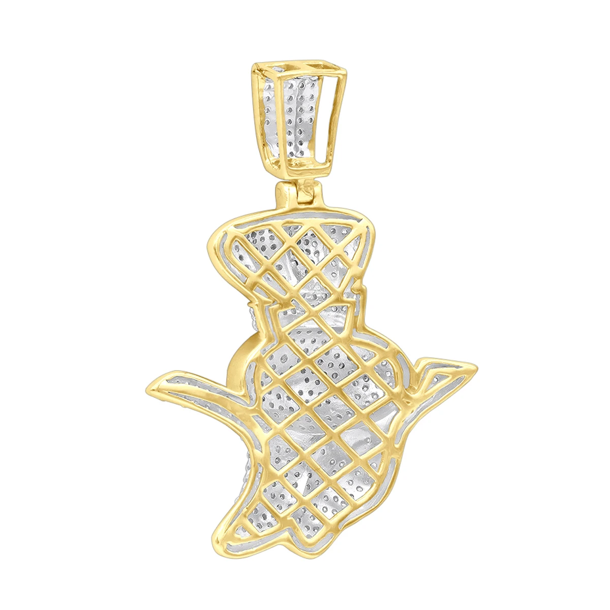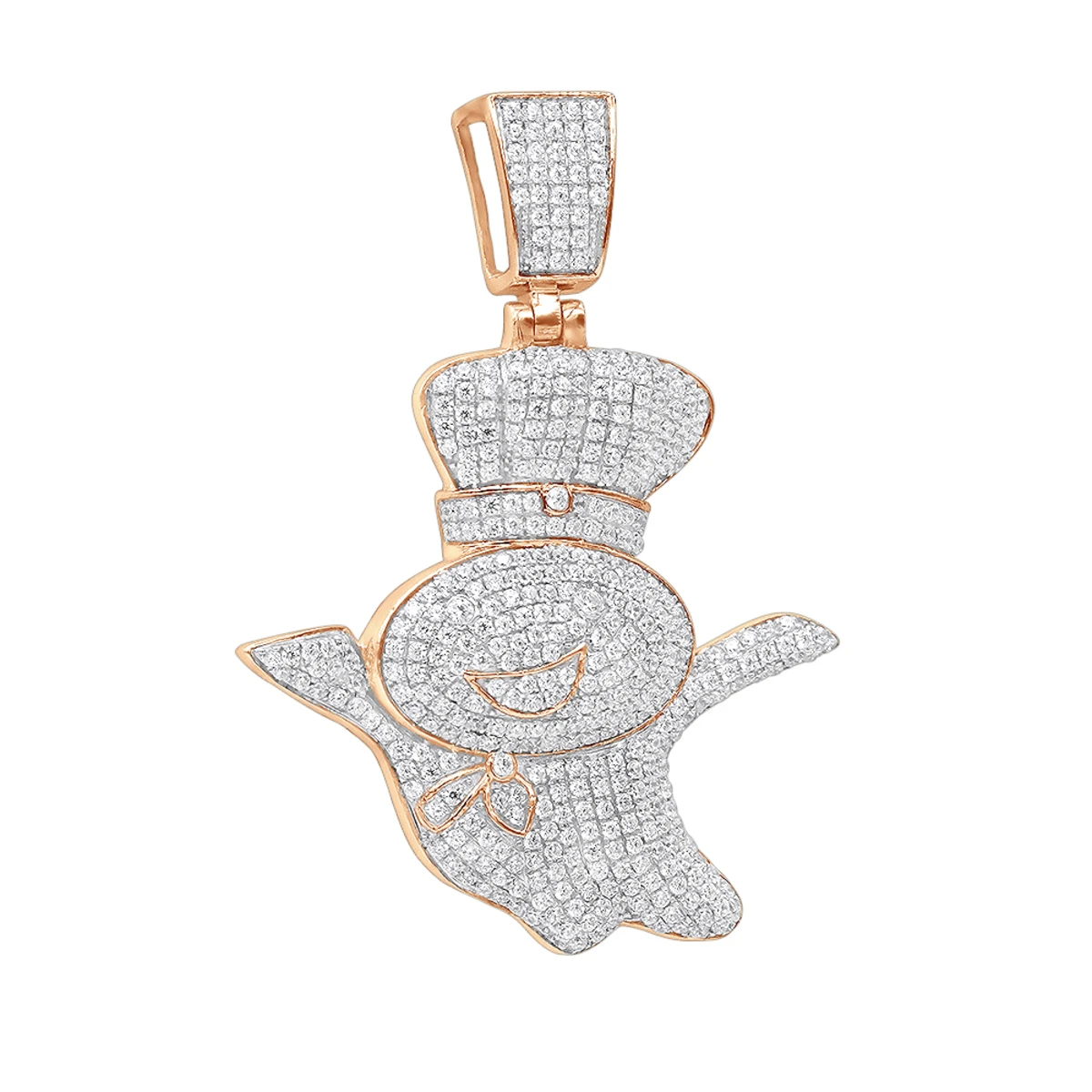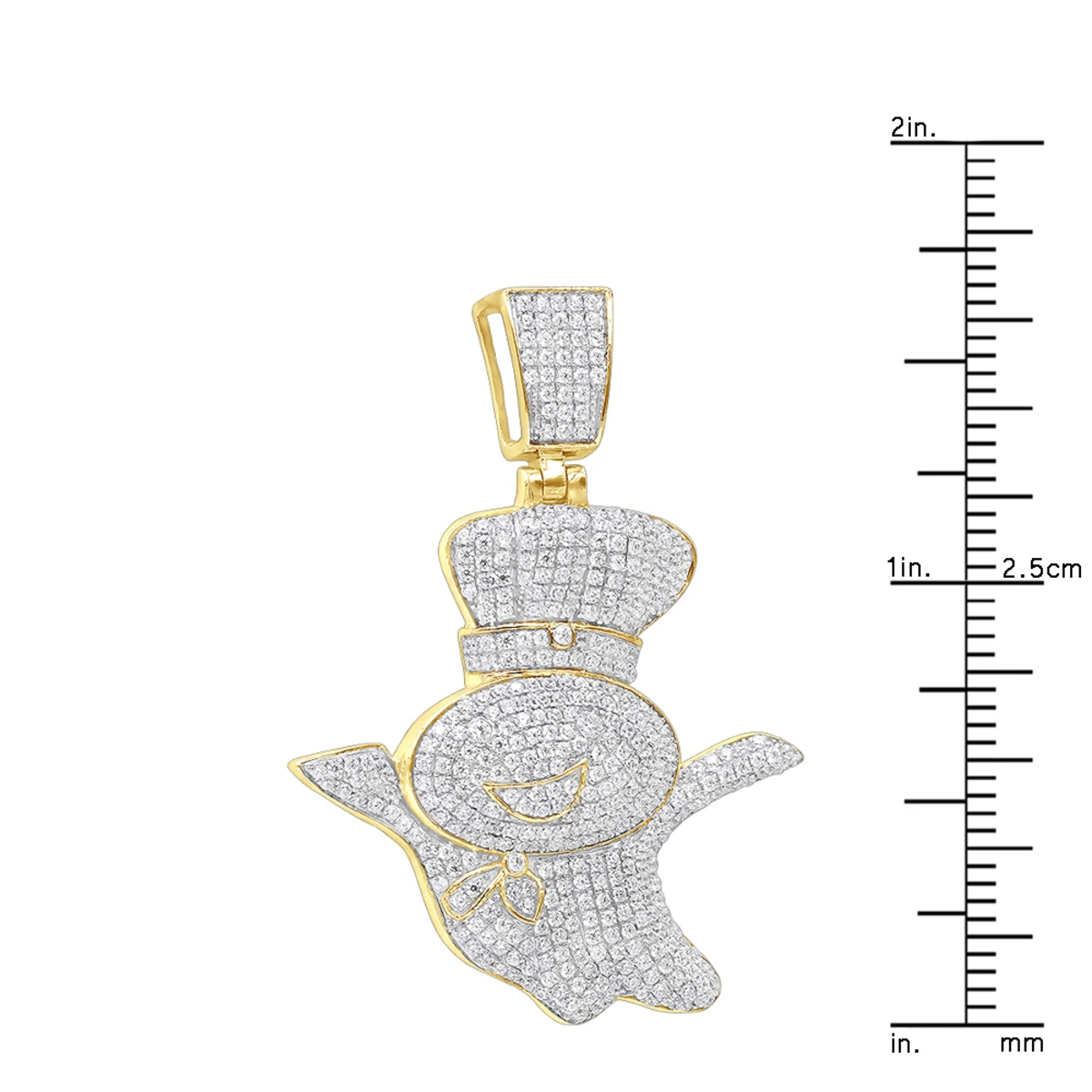 Custom Jewelry! This real 10K Gold Pillsburry Doughboy Diamond Pendant For Men also often called Poppin Fresh, with great details of a loved by everybody Doughboy weighs approximately 6 grams and showcases 1.33 carats of sparkling round pave set genuine diamonds. Featuring an intricate, fully iced out design and a highly polished gold finish, this amazing diamond pendant makes a unique and fun present for somebody who is truly poppin that will be cherished for many years and is available in 10K white, yellow or rose gold. The pendant is over an inch long with bail: 1 11/16in. (42mm) , 1 5/16in. (32mm) wide and will perfectly suit true connoisseurs. Chain must be purchased separately. You also can personalize this piece or check we’ve already made and create your own design.