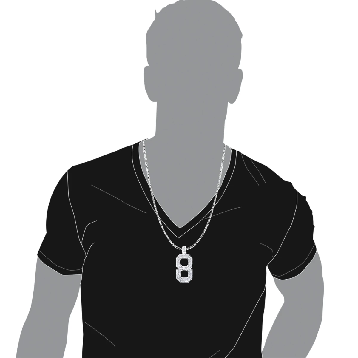 Men’s Custom 14K White Gold Large 7 Carat VVS Diamonds Number 8 Pendant