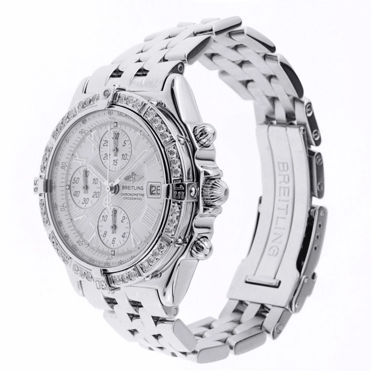 Men’s Diamond Breitling Watch Crosswind 43mm White Dial Diamond Bezel