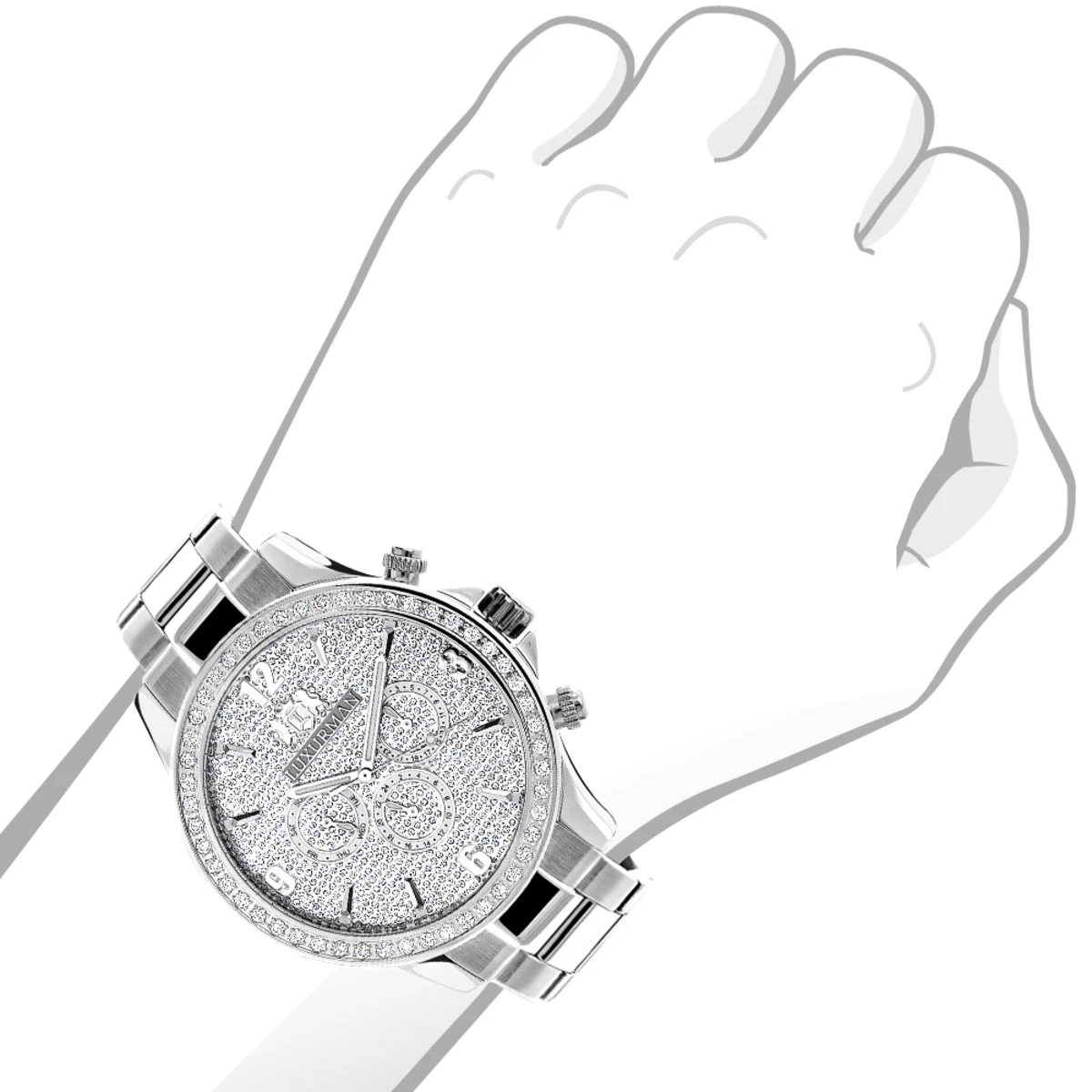 Men’s Luxurman Large Diamond Bezel Watch 2ct Swiss Mvt
