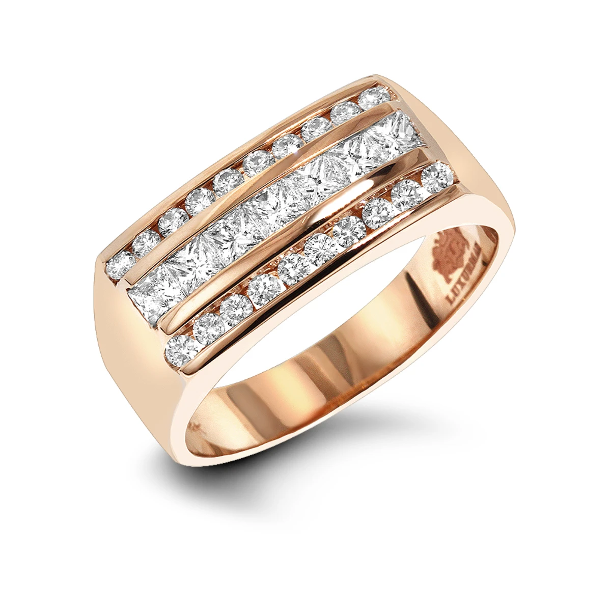 This Men’s Round & Princess Cut Diamond Ring 1.3ct 14K Gold Unique Wedding Band by Luxurman features 1.3 carats of round & princess diamonds and a unique design. This men’s diamond ring is available in 14k yellow, rose, white gold, as well as 18k gold and Platinum as a custom order, various sizes, and can be customized with any color and quality diamonds, also makes a unique wedding band. Please note: it will take us 3-5 business days to make this ring for you so please plan accordingly. Made in New York, USA.