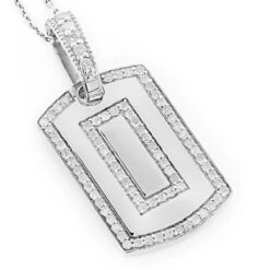 Small Engravable Dog Tag Pendant 14K White Gold W Black Diamonds 0.25ct