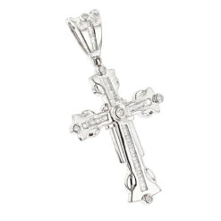 Rolex Style Diamond Crown Pendant Medallion 0.85ct 14K White Gold
