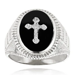 14K Yellow Gold Black Onyx Men’s Ring Cross Detail
