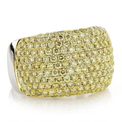 This Natural Yellow Diamond Ring for Women in 14K gold weighs approximately 9 grams and showcases 3.36 carats of sparkling pave set round diamonds. Featuring a wide band design and a highly polished gold finish, this ladies diamond ring makes a unique diamond wedding band, and is available in 14K white, yellow and rose gold.