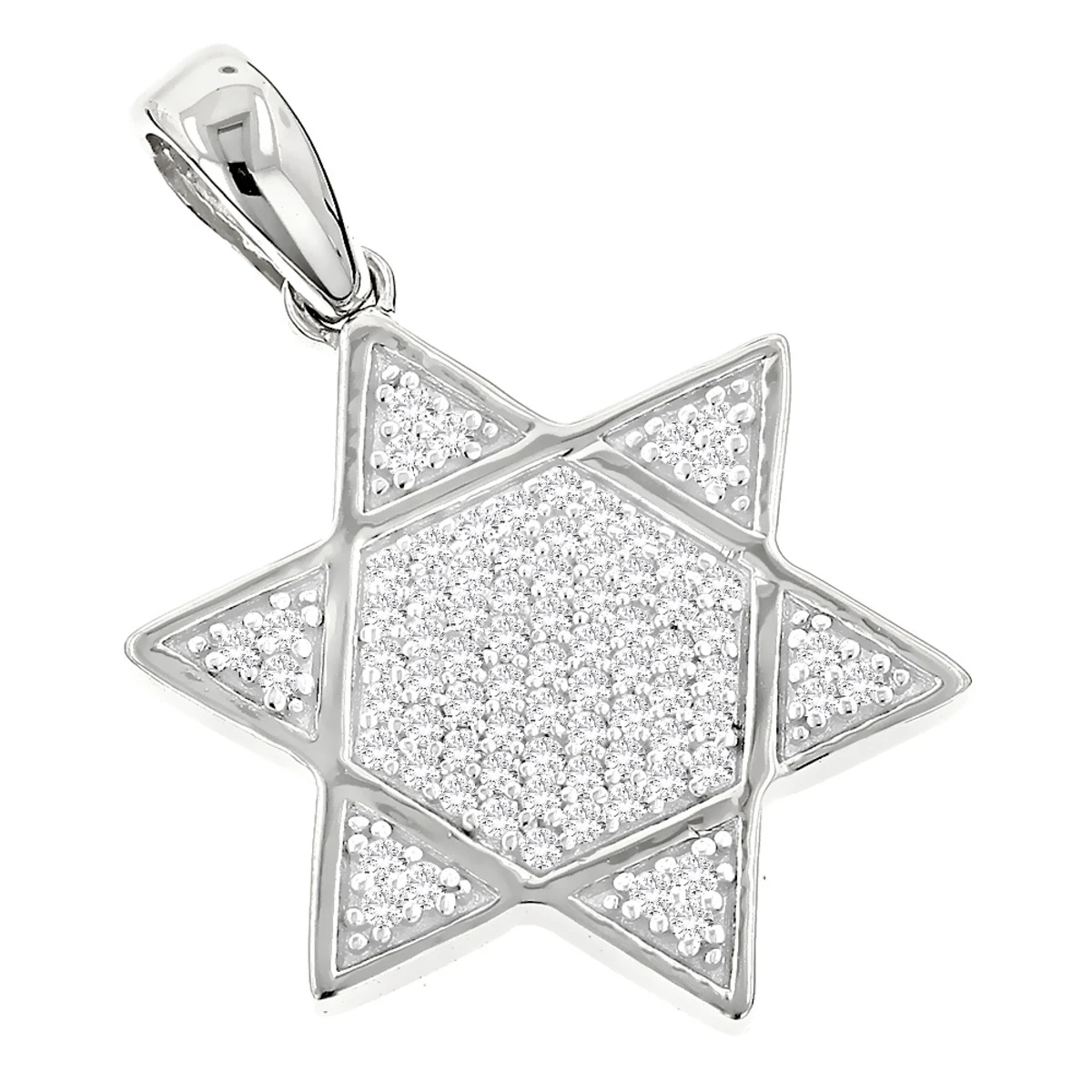This Pave Diamond Star of David Gold Unisex Pendant showcases 0.25 carats of dazzling white diamonds masterfully pave set in 14K solid gold frame. This men’s and women’s diamond pendant is available in 14K white gold, yellow gold and rose gold. Please note: chain is for illustration purposes and must be purchased separately. You also can personalize this piece or check we’ve already made and create your own design.