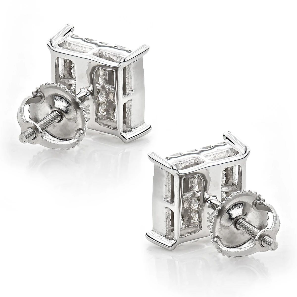 From our women’s and men’s diamond earrings collection These unisex 14K Gold Princess Cut Diamond Earrings Studs showcase 1.15 carats of glistening invisibly-set diamonds (no visible prongs holding diamonds making it look like a one large diamond). Featuring a luxurious 5 by 5 design (25 diamonds per earring) and a highly polished gold finish, these diamond stud earrings are available in 14K white, yellow and rose gold.