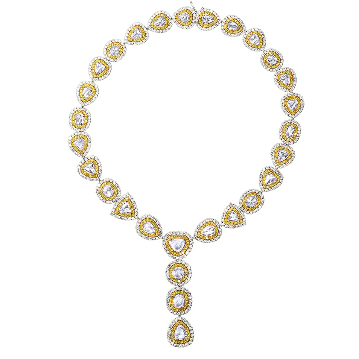 Royal Style Ladies Yellow And White Diamond Necklace 18K Gold 53.17ct