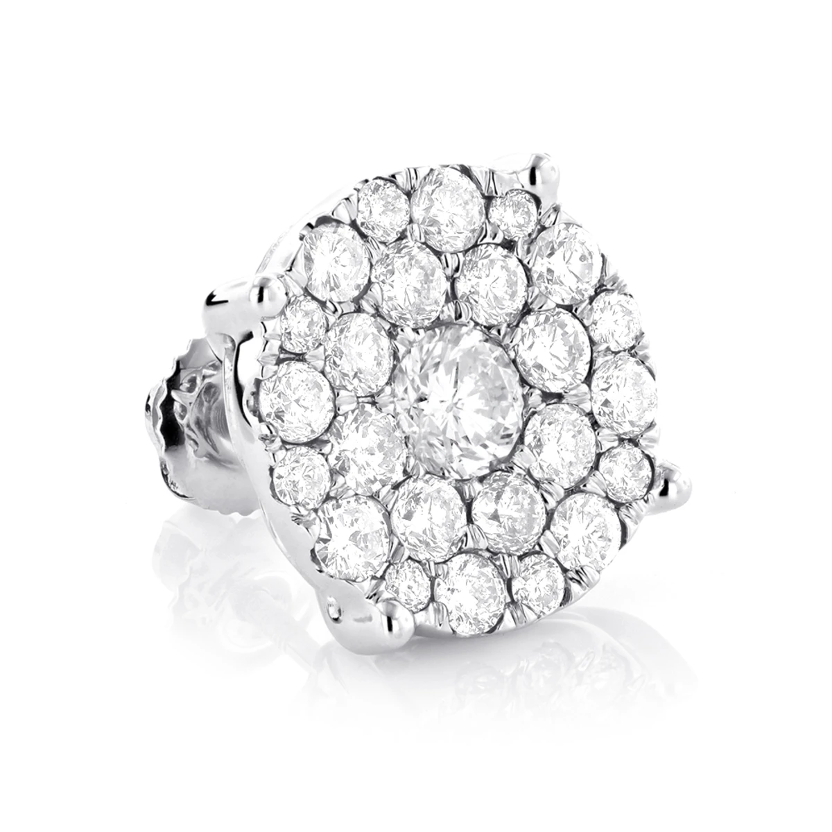 This glitzy Single Oversized Cluster Men’s 18K Gold Round Diamond Stud Earring 2ct is made to be noticed in oversized cluster earring design and showcases 2 carats of sparkling round diamonds. Featuring a beautiful oversized design (earring is just a bit over half an inch in diameter (9/16in.) and a highly polished gold finish, this gorgeous diamond stud earring is simply irresistible.
