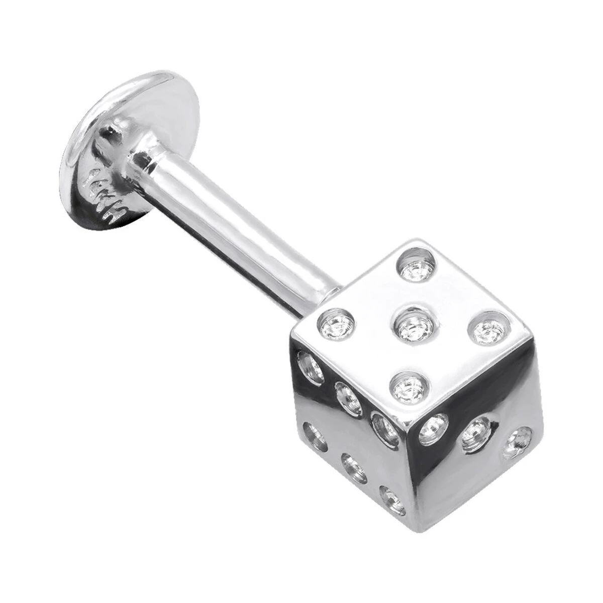 Gold Labret Jewelry: This Solid 14K Gold Dice Stud (14 Gauge) is available in 14K white, yellow and rose gold; and can be custom made with white or fancy color diamonds; contact us for details.