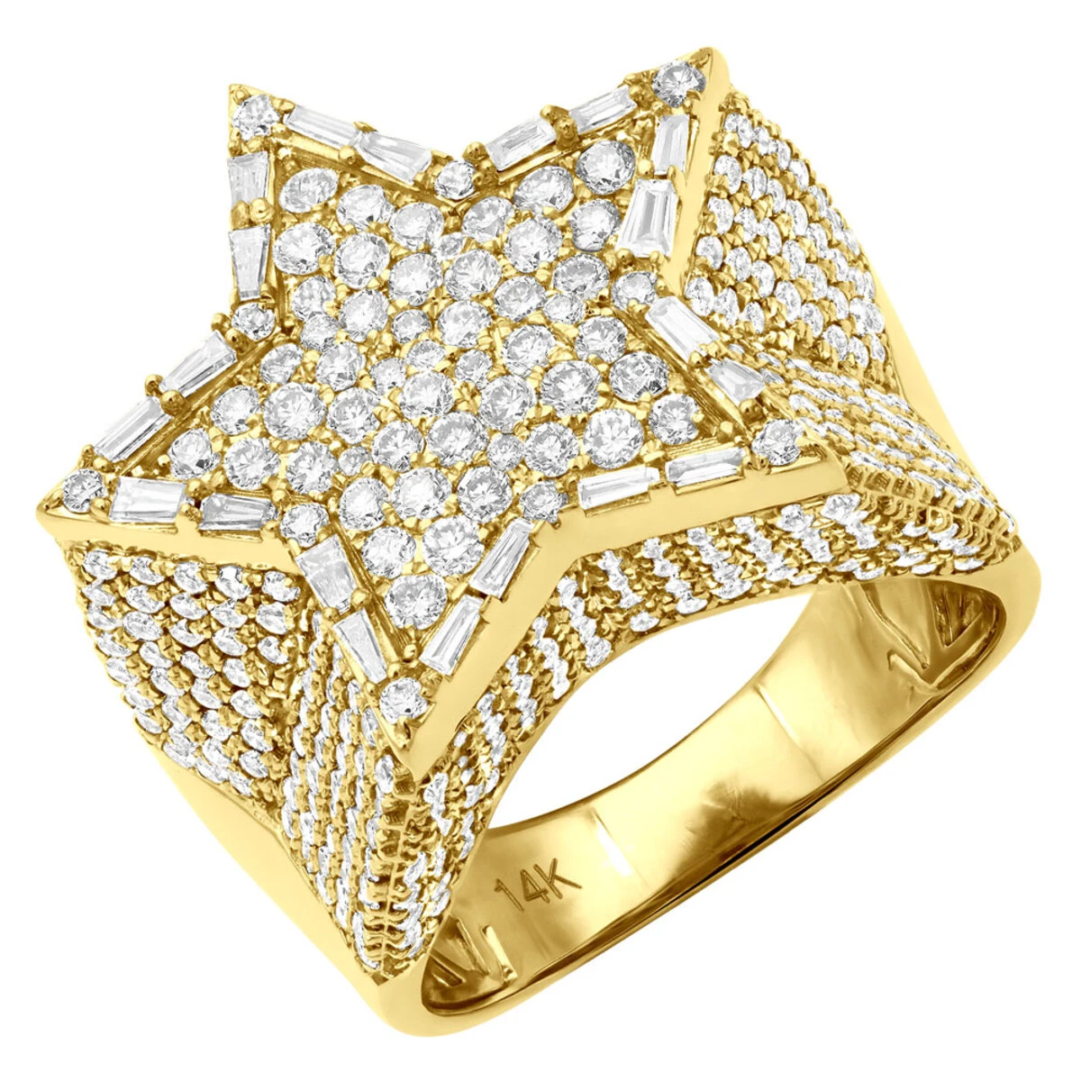 Solid 14K Yellow Gold Pinky Ring For Men Real Diamond Star Ring 4 Carat