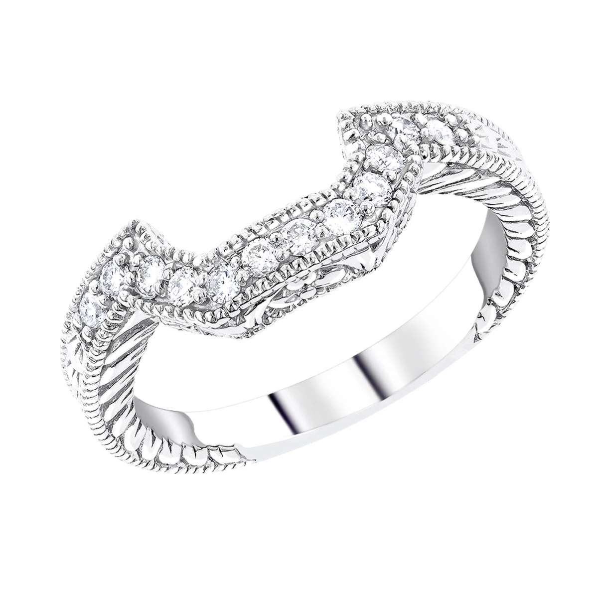 Thin 14K White Gold Diamond Unique Engagement Band 0.22ct