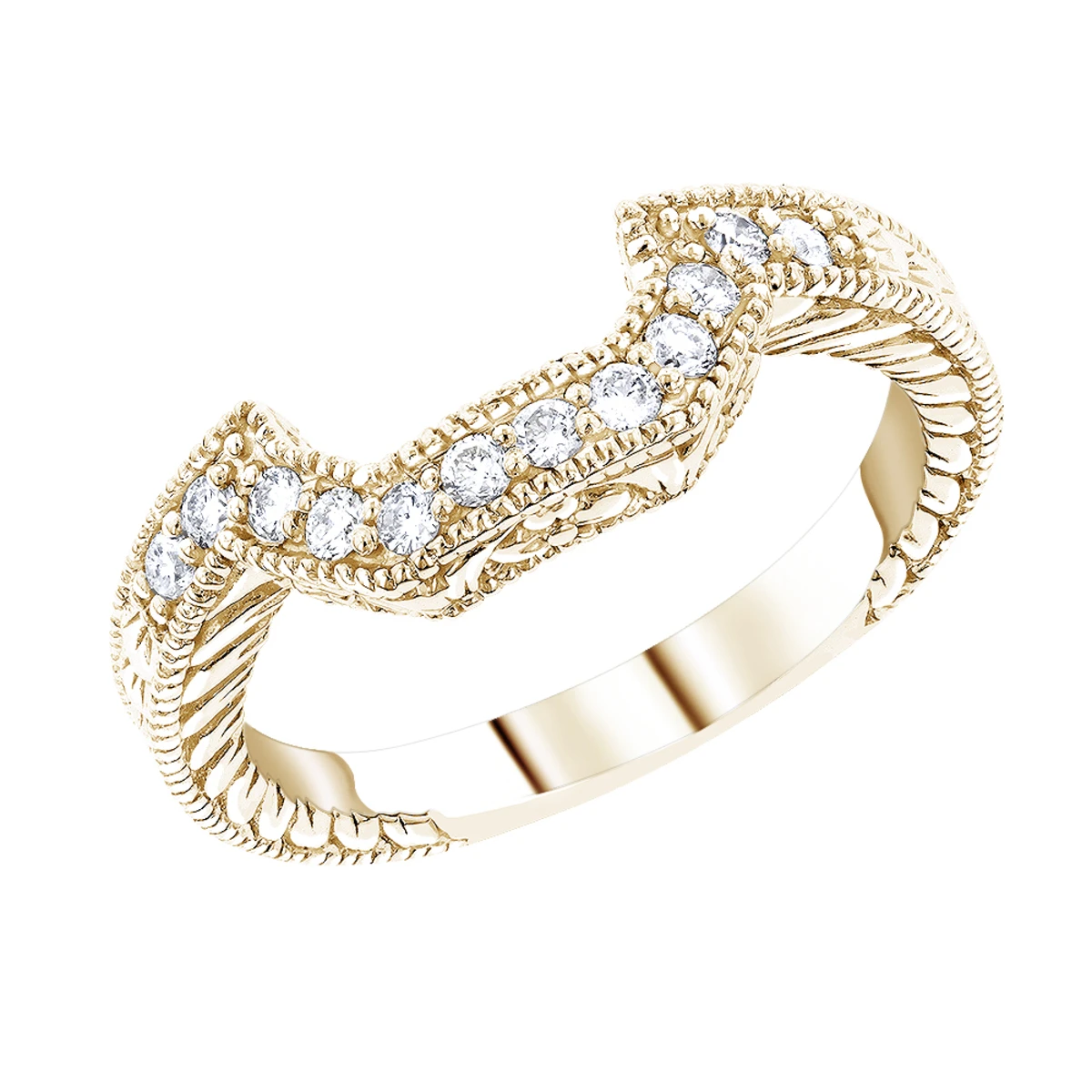 This 14K Gold Diamond Unique Engagement Band showcases 0.22 carats of dazzling round diamonds and is available in Platinum, 18k or 14k yellow, rose, white gold, various sizes, and can be customized with any color and quality diamonds. Please contact us if you would like to customize it.