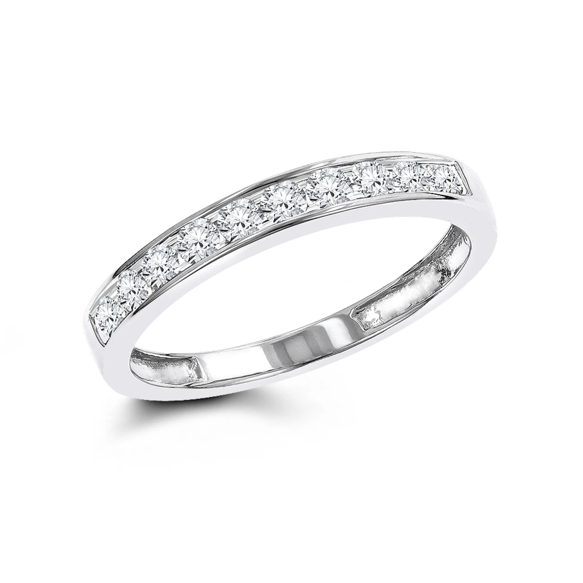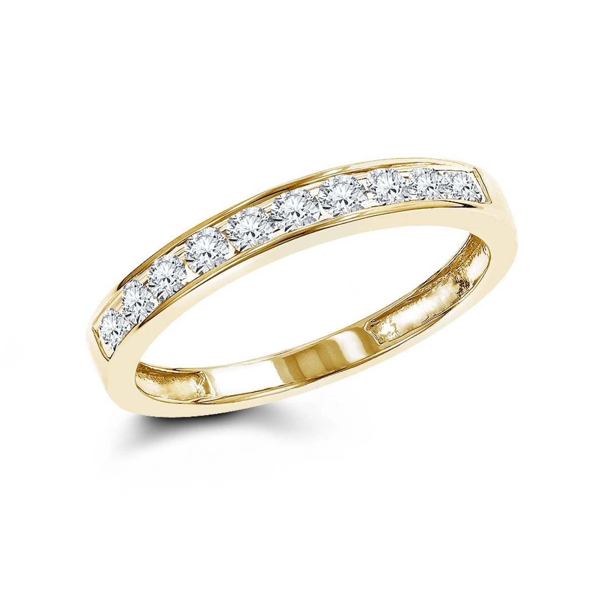 This dazzling 14K Gold Round Cut Women’s Diamond Wedding Band Ring showcases 0.36 ctw of sparkling channel-set diamonds. This classic diamond wedding band for women displays 10 brilliant diamonds and can match virtually any diamond engagement ring. Available in 14K white, yellow and rose gold.