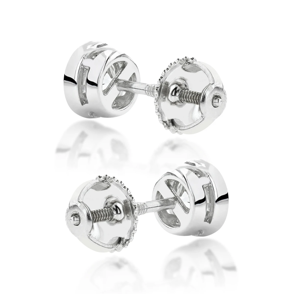 Two Carat 14K White Gold Solitaire Round Diamond Bezel Stud Earrings 7mm