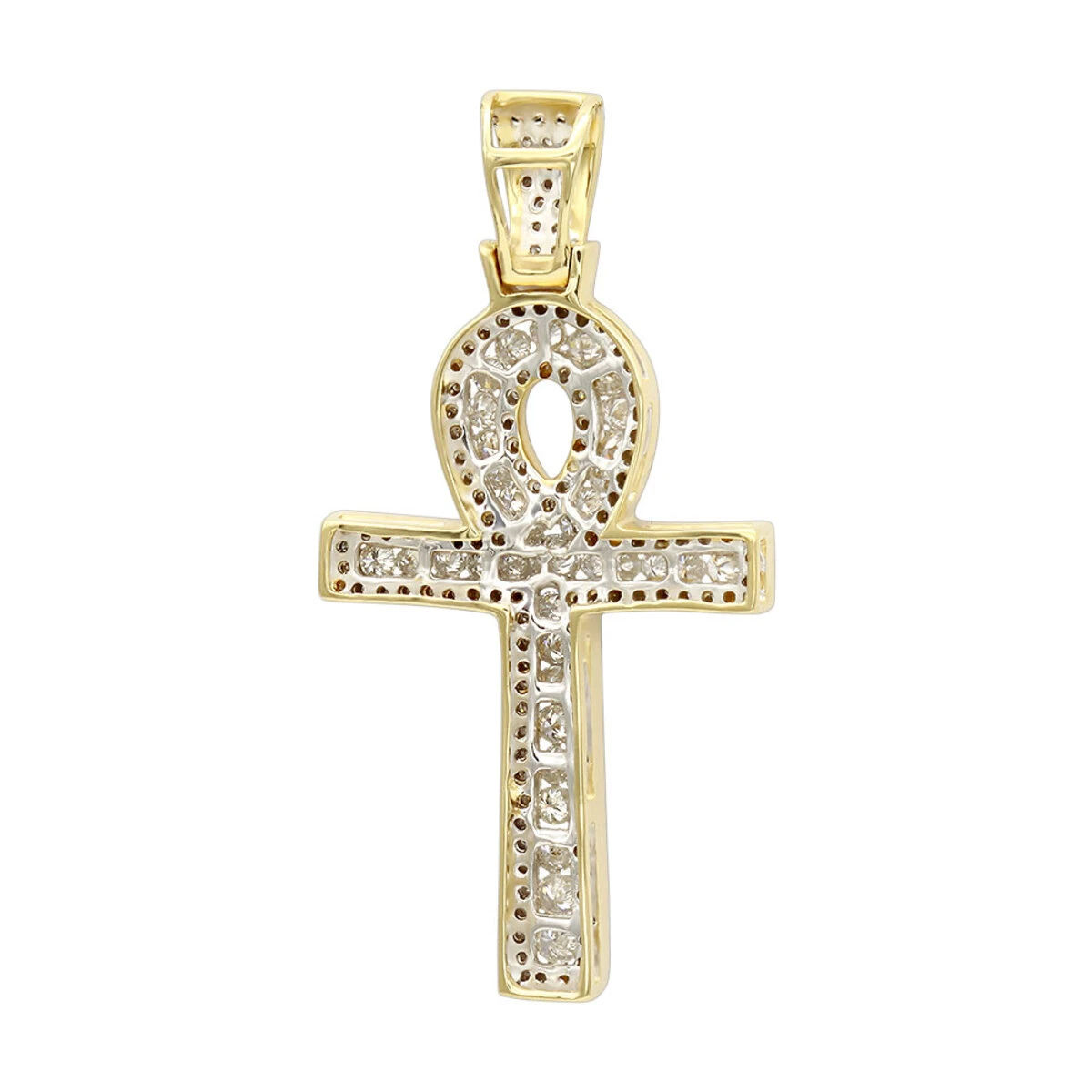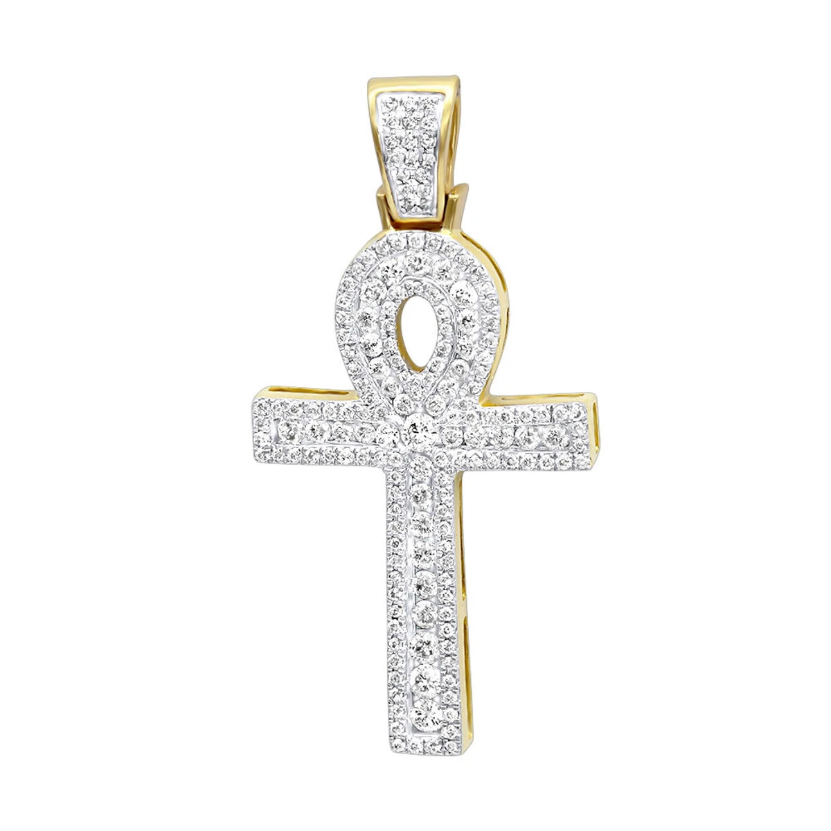 Unique 1 Carat Diamond Cross Pendant Egyptian Ankh Symbol Of Life 14K Yellow Gold