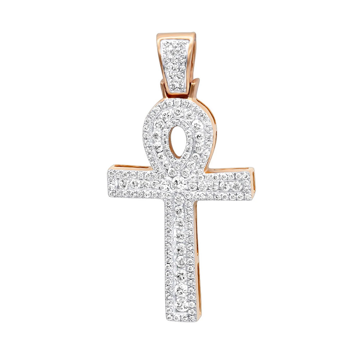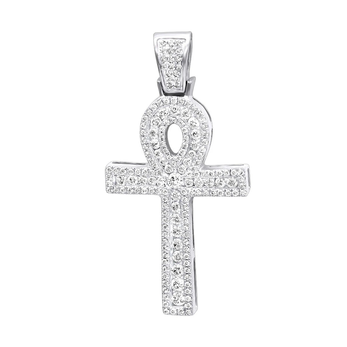 Unique Luxurman Diamond Crosses: This 1 Carat Diamond Solid 14k Gold Diamond Egyptian Cross – Ankh Pendant of Life represents the concept of eternal life, the ankh also known as breath of life, the key of the Nile or crux ansata (Latin meaning “cross with a handle”); this unisex Egyptian diamond cross pendant showcases a full carat of sparkling diamonds masterfully set on highly polished 14K gold base. This diamond ankh pendant makes a great present for any man or a woman with a great meaning that will be cherished and worn forever and is available in 14K white, yellow and rose gold. You also can personalize this piece or check we’ve already made and create your own design.