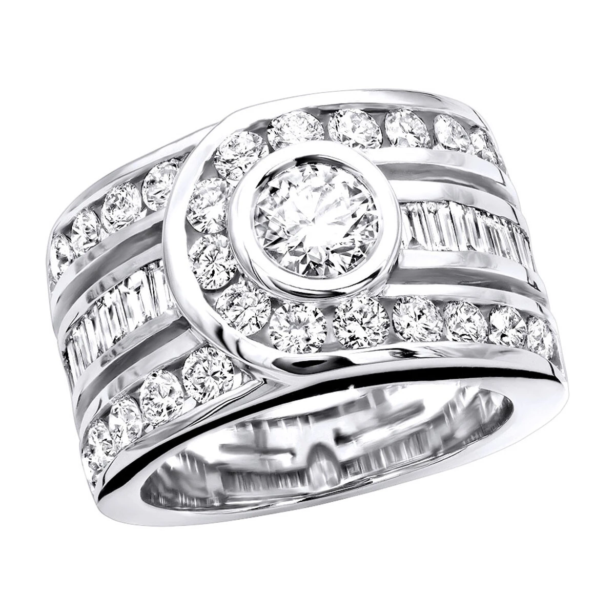 This Unique Right Hand Diamond Ring for Women by Luxurman features 3 carats of round & baguette cut diamonds (44 diamonds). This diamond right hand ladies ring is available in 14k yellow, rose, white gold as well as 18k gold and Platinum as a custom order and can be customized with any color and quality diamonds. Please note: it will take us 3-5 business days to make this ring for you so please plan accordingly. Please contact us at 212-398-3123 if your size or desired option is not listed.
