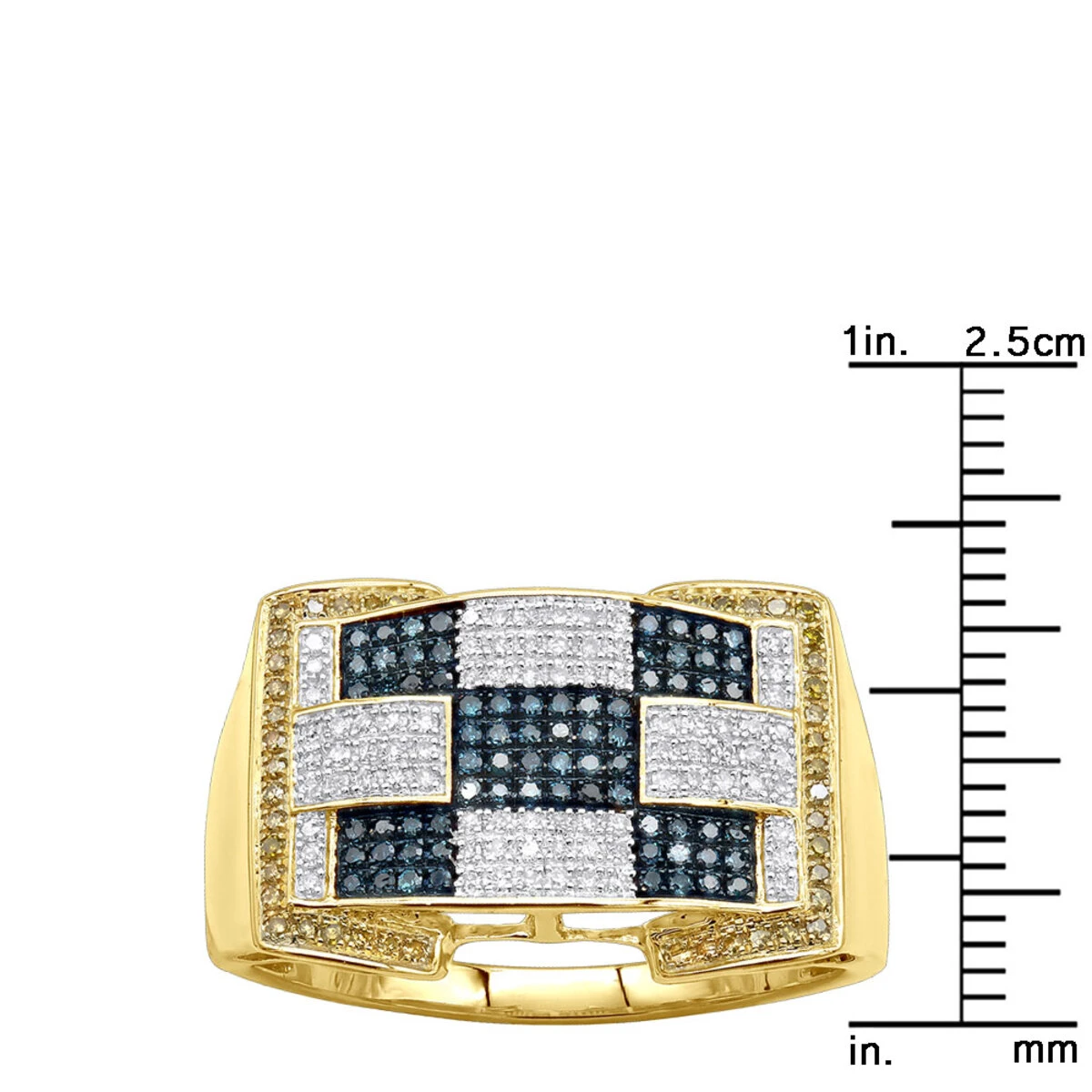 Unique White Blue Yellow Diamond Ring For Men 10K Yellow Gold 0.97ct