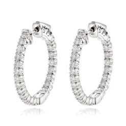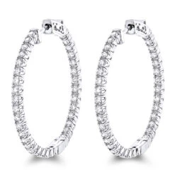 14K Yellow Gold Inside Out Diamond Hoop Earrings For Women 1.3ct 3/4in By Luxurman