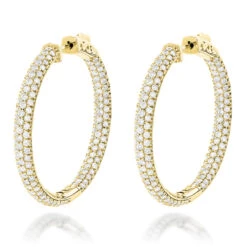 Large 5 Carat Diamond Hoop Earrings For Women 14K Yellow Gold Inside Out Style
