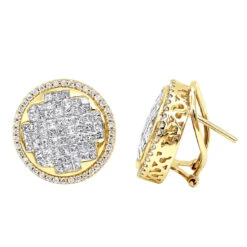 Royal Halo Circle Diamond Earrings For Women With Sapphires 14K White Gold