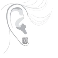 Unique 18K White Gold Emerald Cut Diamond Stud Earrings Halo Design 2.5ct