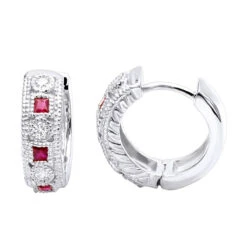 VS Diamond And Oval Ruby Stud Earrings For Women 18K Yellow Gold 3.74ct