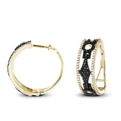 Unique Diamond Hoop Earrings Large Black Diamond Huggies 14K Yellow Gold 3ct
