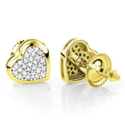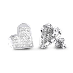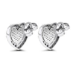 Diamond Heart Earrings Studs: 10K White Gold Pave Diamonds 0.5ct