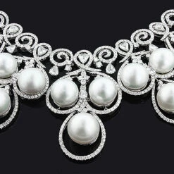 18K White Gold Luccello Pearl Necklace With Diamonds 17.96ct