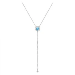Ladies March Birthstone Customizable 14K Yellow Gold Diamond Aquamarine Y Necklace