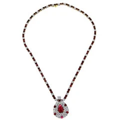 Unique Blue Sapphires And Diamond Necklace For Women 14K White Gold
