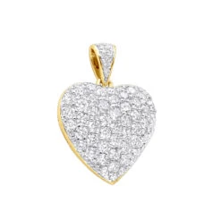 Large 14K White Gold Fully Paved Puffed Diamond Heart Pendant Necklace 2.75ct