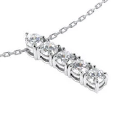 14K White Gold 5 Stone Shared Prong Set Diamond Journey Pendant 1ct