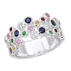 14K Yellow Gold Gemstone Cocktail Ring For Women With Sapphires Rubies Tsavorites