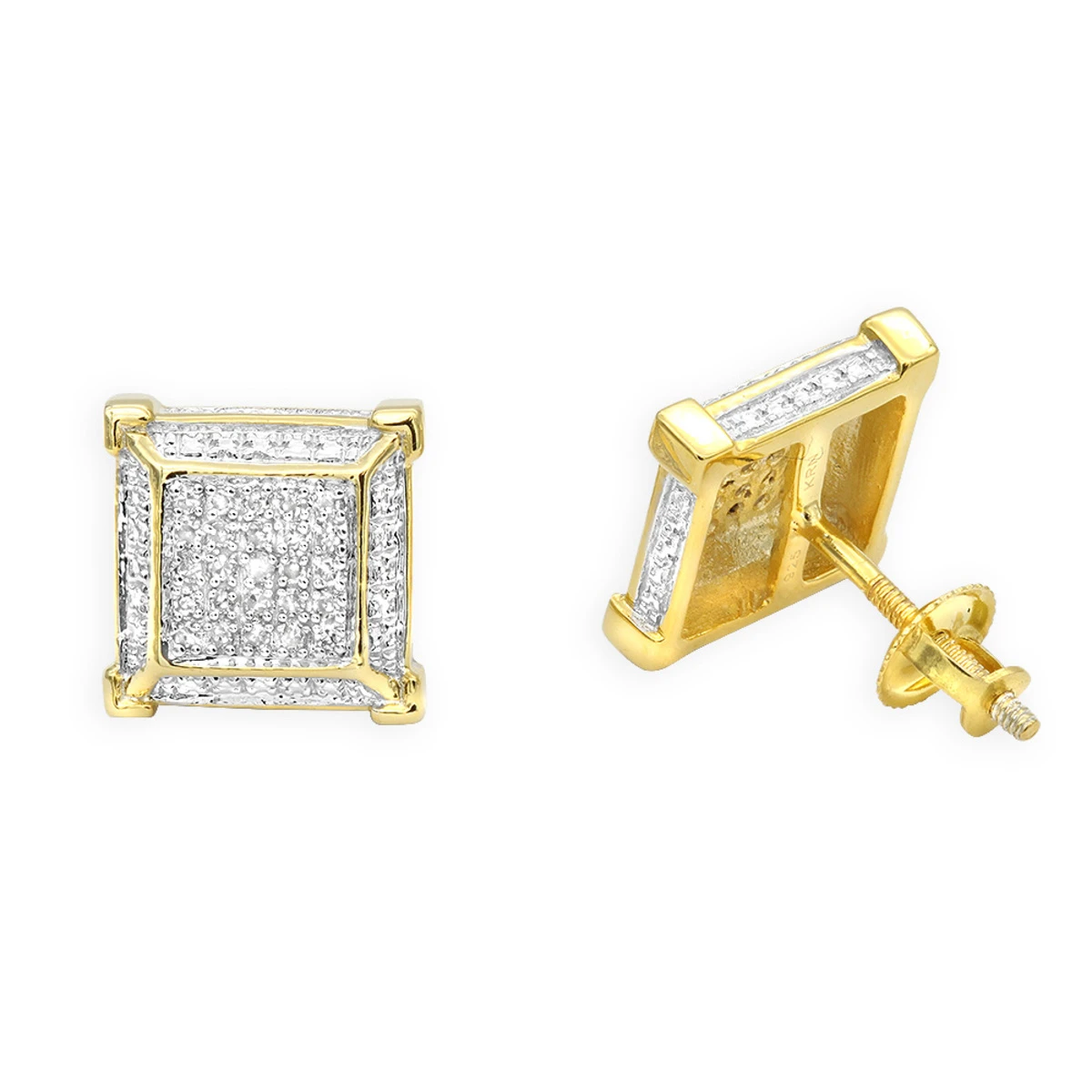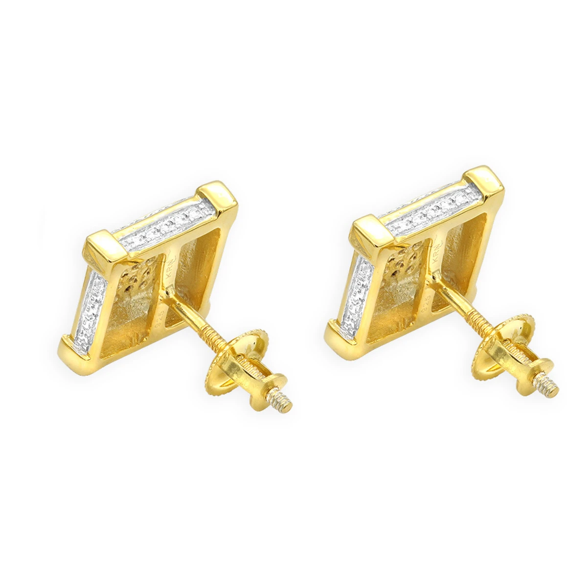 These Yellow Gold Plated Sterling Silver Diamond Earrings showcase 0.22 carats of genuine diamonds and screw back closures for secure wear.